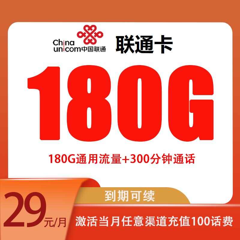 联通29月租180G加300分钟