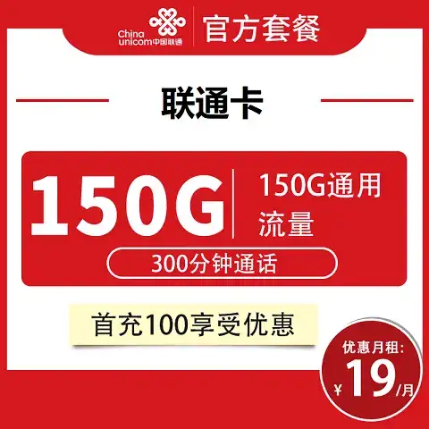 联通优惠后19月租150G加300分钟