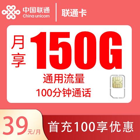 联通39月租150G加100分钟